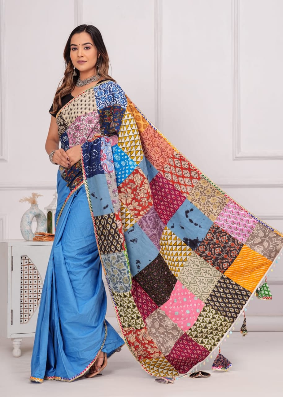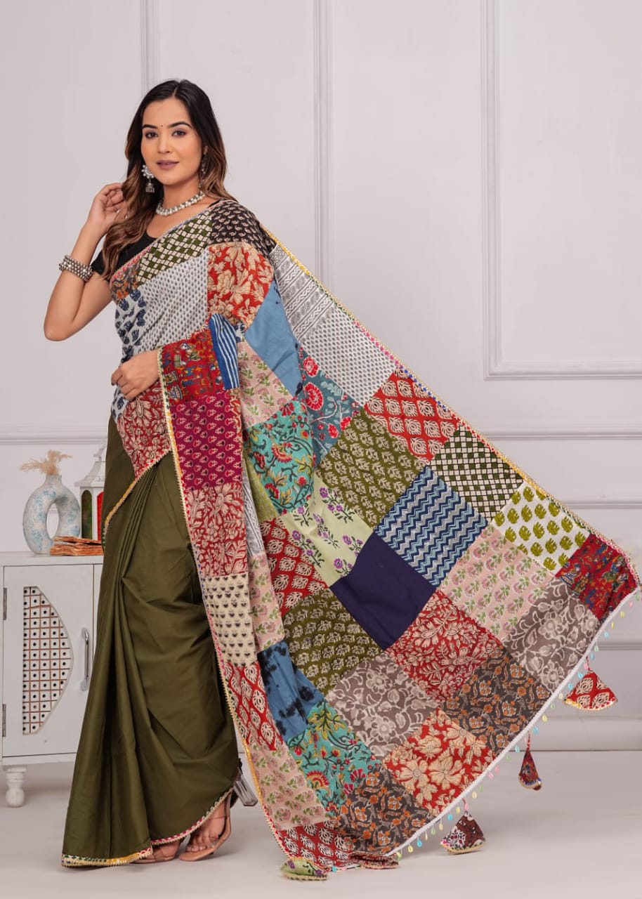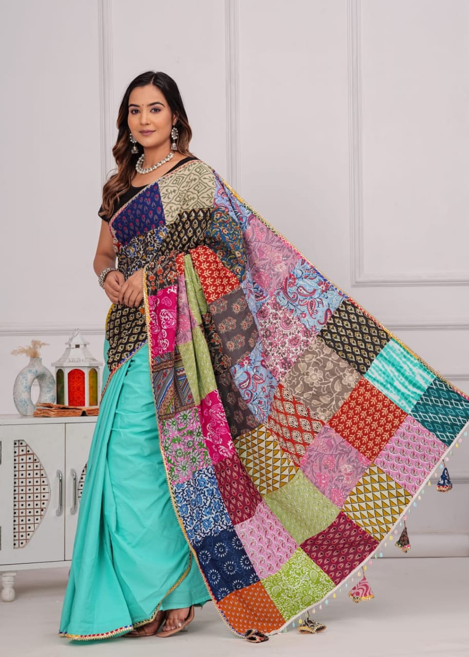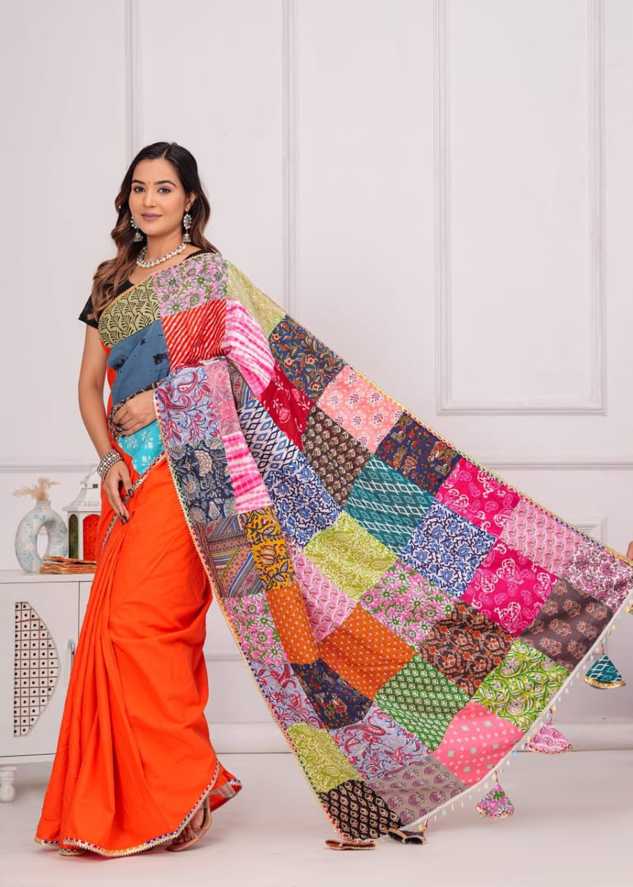 New Cotton Saree with patch work