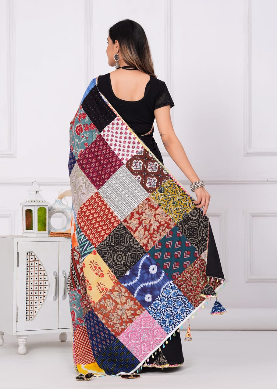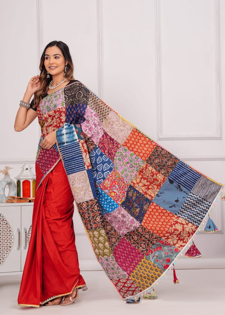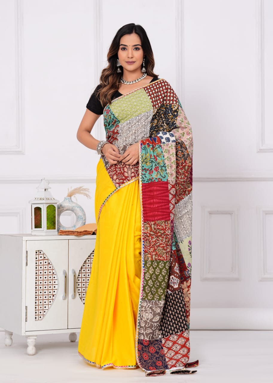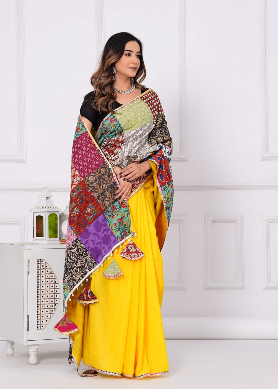 New Cotton Saree with patch work