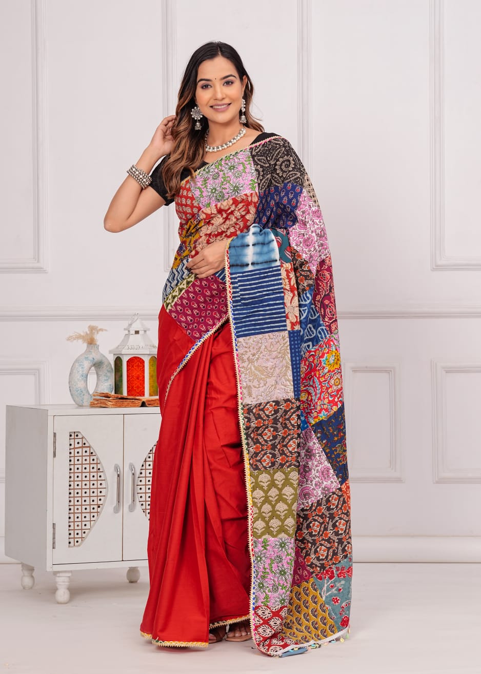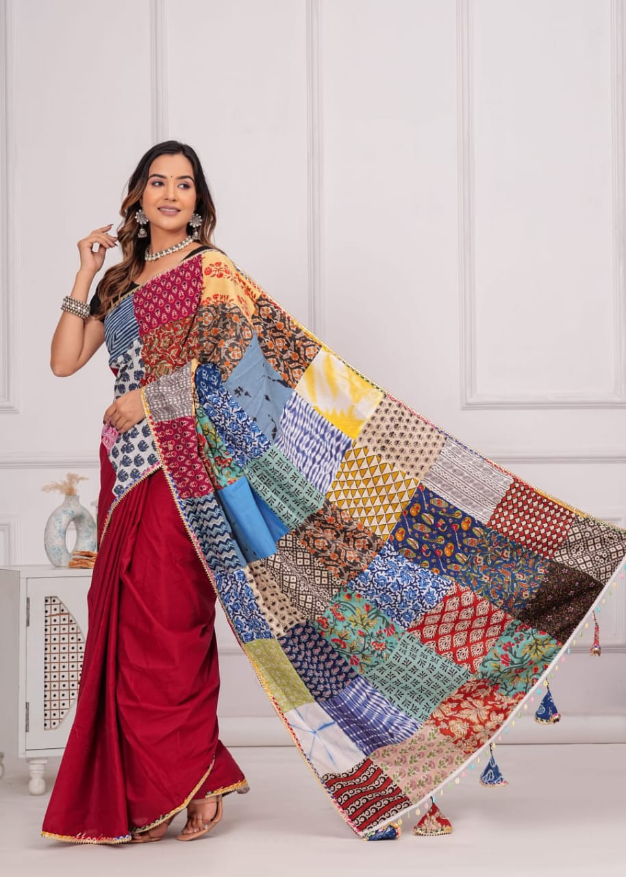 Cotton Saree with patch work